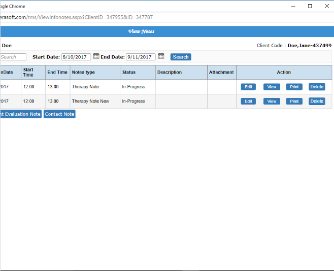 1) Go to Individual, Progress Notes 2) Click on your patient's name for his/her sessions to appear below 3) Click on the blue Description of the session (ex. Ind. Therapy 45-50m) 4) Click the Delete button The Delete button will only be visible to ...